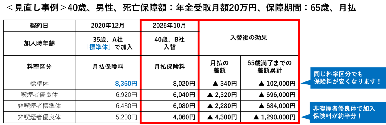 ⇒同じ保障内容で保険料が安くなる可能性があります!