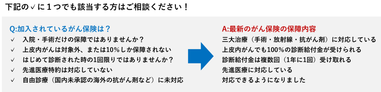 10年以上前の保障内容では、がんの治療に十分対応できない恐れがあります。