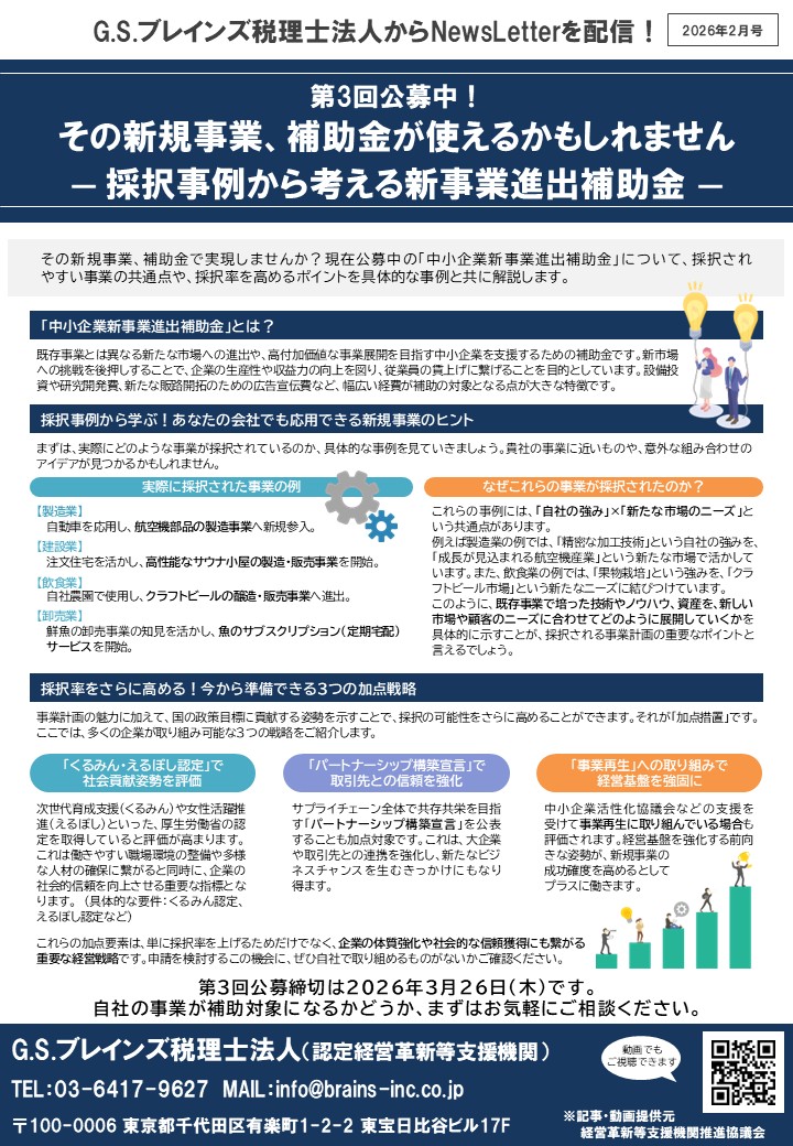 G.S.ブレインズグループでは、皆様の経営に役立つ情報を定期的に配信しております。