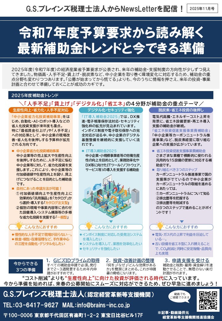 G.S.ブレインズグループでは、皆様の経営に役立つ情報を定期的に配信しております。