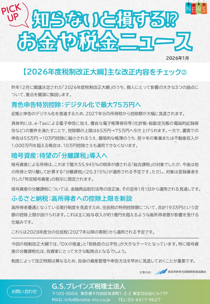 2025年12月19日、2026年度税制改正大綱が公表されました。 長引く物価高への対策と…