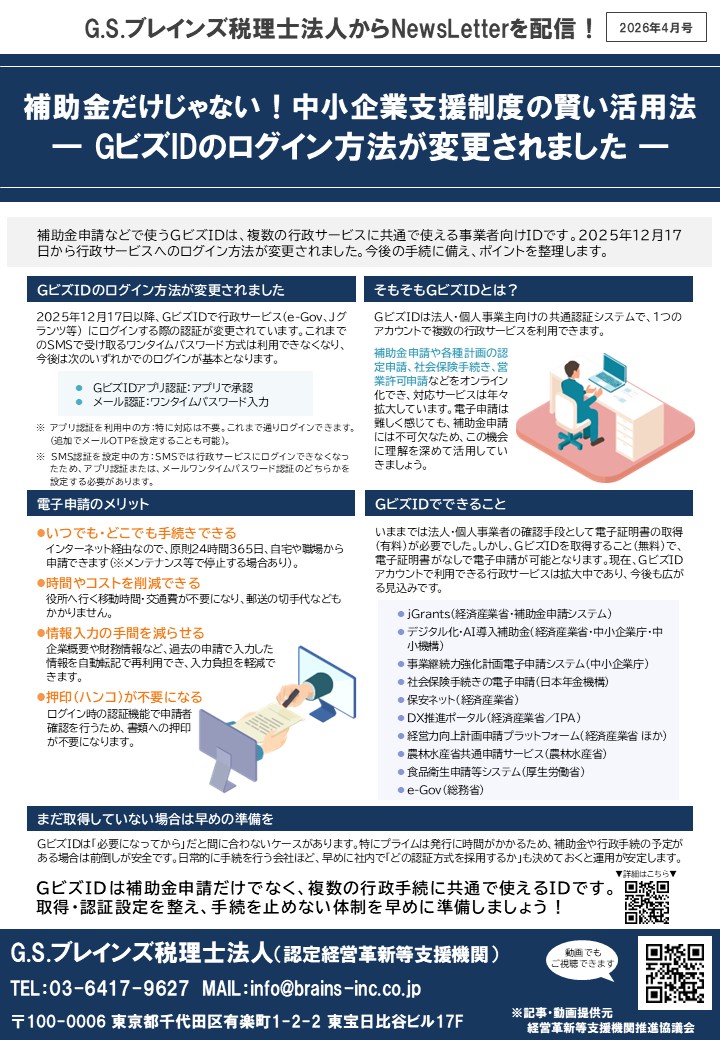 G.S.ブレインズグループでは、皆様の経営に役立つ情報を定期的に配信しております。