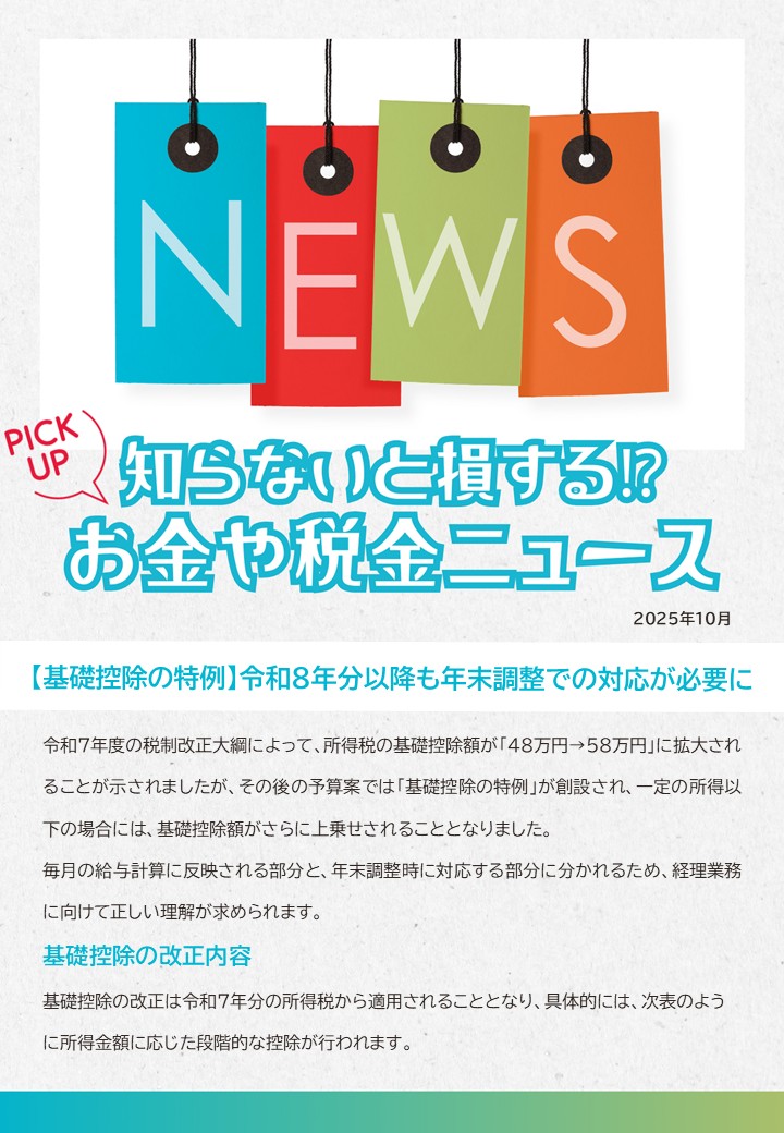 そのため、「基礎控除の特例」の対象となる従業員については、年末調整時の還付額が増える可能性も高まります。