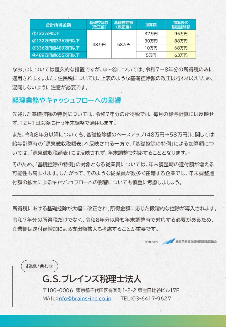 令和7年分の所得税だけでなく、令和8年分以降も年末調整時で対応する必要があるため、企業側は還付額増加による支出額拡大も考慮することが重要です。